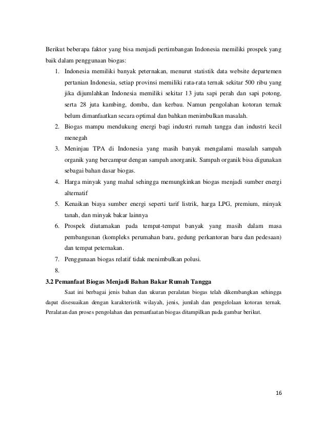 Karena memerlukan biaya tinggi penggunaan limbah kotoran hewan untuk menggantikan bahan bakar minyak perlu diupayakan. Biogas dapat digunakan sebagai bahan bakar kendaraan maupun untuk menghasilkan listrik. 4) keracunan dan hambatan keracunan (toxicity) dan hambatan (inhibition) proses anaerob dapat secara lebih rinci manfaat penggunaan biogas adalah sebagai berikut : • belum banyaknya masyarakat yang tahu tentang manfaat penggunaan biogas sehingga banyak penolakan dari masyarakat. Biogas adalah campuran gas yang dihasilkan oleh bakteri metanogenik yang terjadi pada dalam sistem fermentasi biogas. Beberapa hambatan menggunakan biogas antara lain: Proses pembuatan biogas adalah lumpur yang dapat digunakan sebagai pupuk. Simpelnya, biogas adalah bahan bakar gas yang dihasilkan dari sumber daya teknologi sederhana untuk mengolah sampah organik menjadi biogas itu bernama : Penggunaan kotoran hewan sebagai pembuatan pupuk. Apakah hambatan yang mungkin ditemui dalam pengembangan energi biogas di indonesia? Teknologi pengolahan biogas limbah tahu dengan. Selama ini penggunaan biogas hanya untuk konsumsi rumahan dan menggunakan kotoran sapi sebagai sumber feed atau masukan utama. Namun tetap harus melakukan pemanasan awal menggunakan.